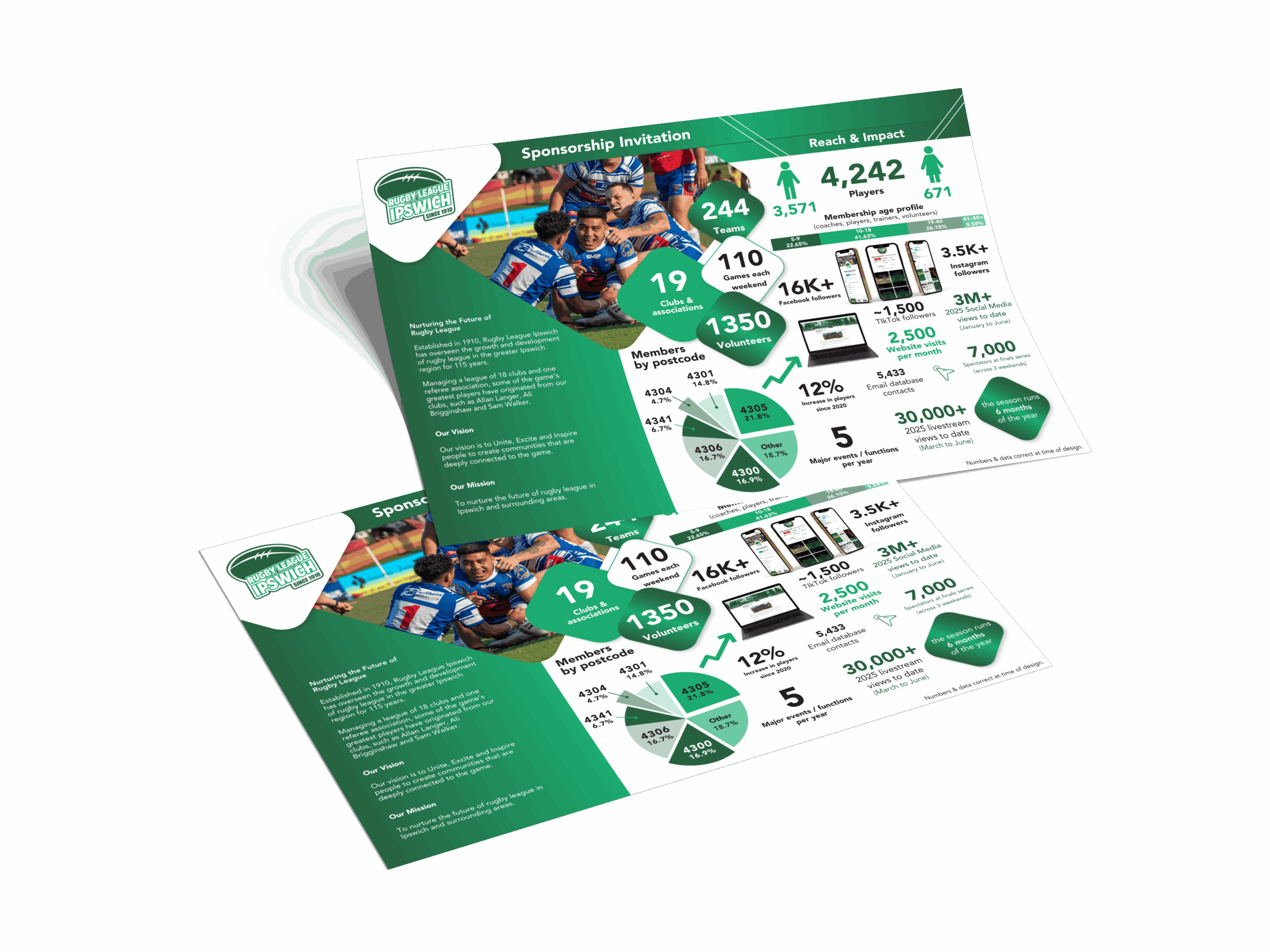 Rugby League Ipswich (RLI), the governing body overseeing multiple rugby league clubs in the Ipswich region, recognised that its sponsorship program lacked structure, clear positioning and effective tools to present its value to potential partners.